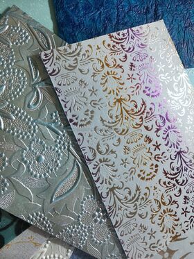 This Colourific Blue Pack #1 contains 30+ handmade paper sheets. This is a mix of styles from all of our range including embossed, foiled, precious metals, flocked, glitterati, chiffons, batik, silk and cotton papers. Each pack has a fantastic mix of blue themed papers in a range of shades, patterns and textures giving you the ultimate mix for your project!