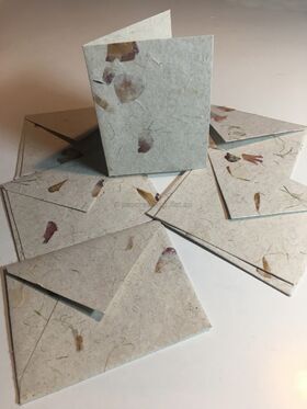 These handmade papers are made from 100% recycled cotton and silk fibres and have some petals on the surface as well as those embedded during manufacture.