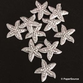 Perfect for Seaside, Tropical or Destination celebrations, this stunning, crystal clear diamante Starfish can be used for extra sparkle on your invitation or crafty project. This trim has a flat metal back and is easily attached to paper, plastic, glass, fabric …practically anything! Dependent on the surface, we recommend hot melt glue for the strongest adhesion. These gorgeous trims are also popular for use on wedding cakes, chair sashes, bomboniere.