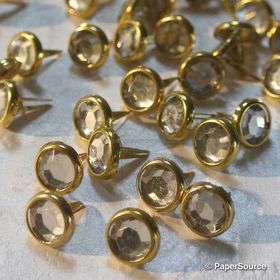 Paper Fastener / Brad • Round Clear Crystal with Gold surround