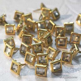 Paper Fastener / Brad • Square Clear Crystal with Gold surround