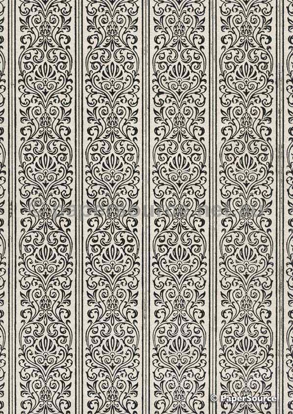 A classic pattern foiled in gleaming black metallic on a richly dyed quartz, pearlescent finish paper which has been manufactured from 100% handmade, recycled cotton and silk. This pattern is directional and will be supplied in either portrait (vertical) or landscape (horizontal) orientation unless specified at checkout.