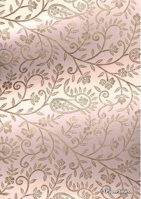 A classic floral pattern foiled in gleaming copper metallic on a richly dyed apricot, matte finish cotton paper which has been manufactured from 100% handmade, recycled cotton and silk.