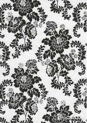 Glitter Printed Paper Handmade • Petite Peony White/Black/S