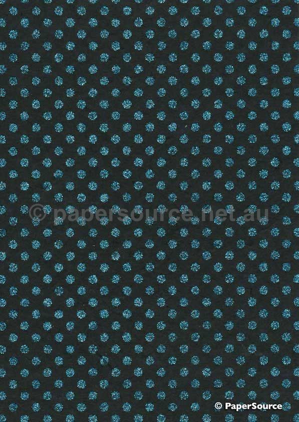 Glitter Printed Paper Handmade • Polka Dot Black/Aqua
