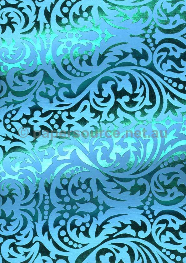 Classic patterns foiled in gleaming metallics and luscious colours on a richly dyed matte paper which has been manufactured from 100% handmade, recycled cotton and silk.