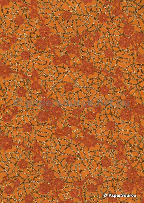 These beautiful patterned papers have a plush velvet or flocked design printed onto a handmade, matt finish orange cotton paper and have then been decorated with loads of gold glitter for that extra sparkly effect. Extremely versatile and perfect for invitations, card making, general craft and can be framed as fine art creations.