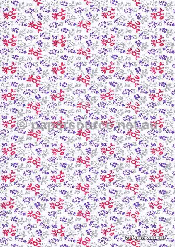 Printed Paper Handmade • Tiny Floral White Red/Purple