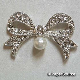 A stunning Faux Pearl is surrounded by crystal clear Diamantes in a bow design which will add extra sparkle to your card, invitation or crafty project. This trim has a flat metal back and is easily attached to paper, plastic, glass, fabric …practically anything, by using hot melt glue for good adhesion. This gorgeous trim is also popular for use on unity candles, wedding bouquets, cakes, chair sashes, napkin bands, bomboniere, flower girl headbands, hairpins and baskets, guest books, giftwrap trims or wedding venue decorations!